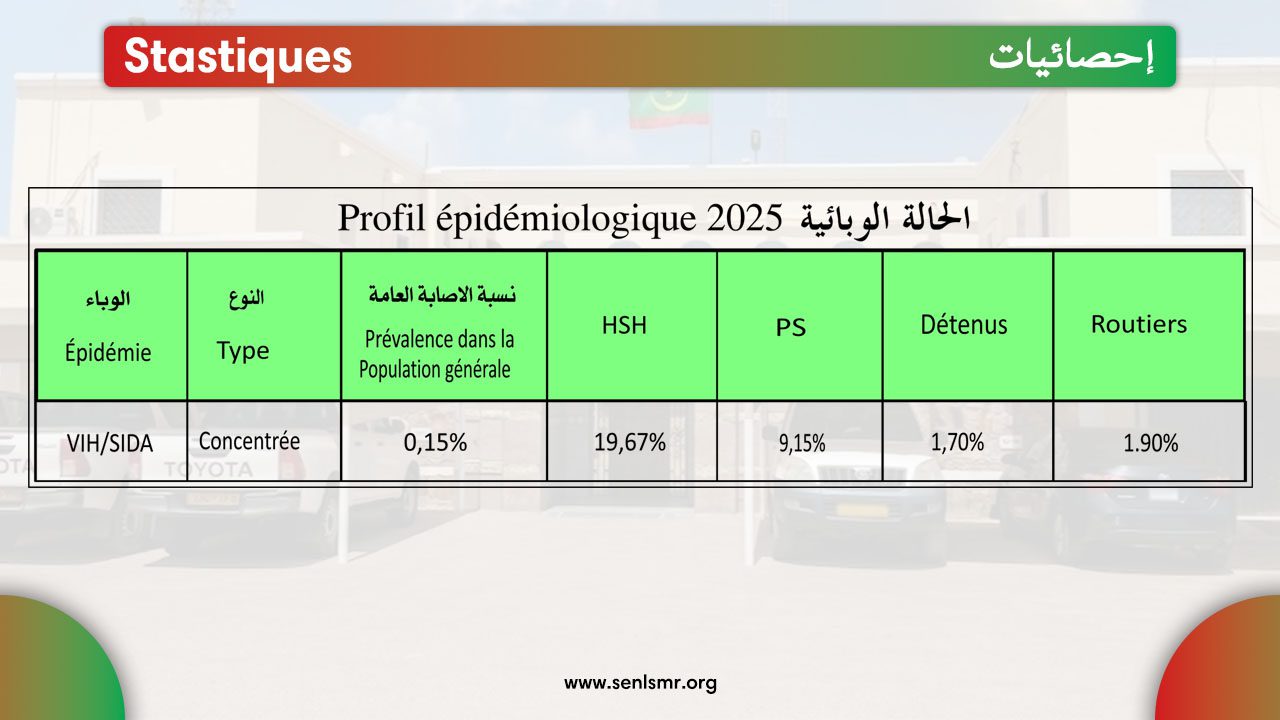 Avec les bons résultats enregistrés dans la population générale (0,15%), les avancées dans la prise en charge des PVVIH et la confirmation de la dynamique baissière au sein des PC, l’épidémie VIH en Mauritanie reste concentrée dans certains groupes à hauts risques, tels les HSH et les PS, où la séropositivité est estimée respectivement à 19,6% et 9,1%.